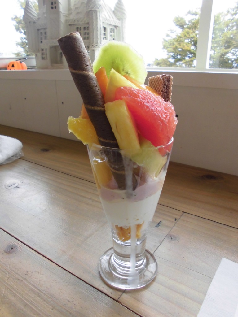 散歩して少し汗もかき、お腹に入る余地が出来たのでパフェの盛り放題の≪ひのでカフェ≫に向かいます。