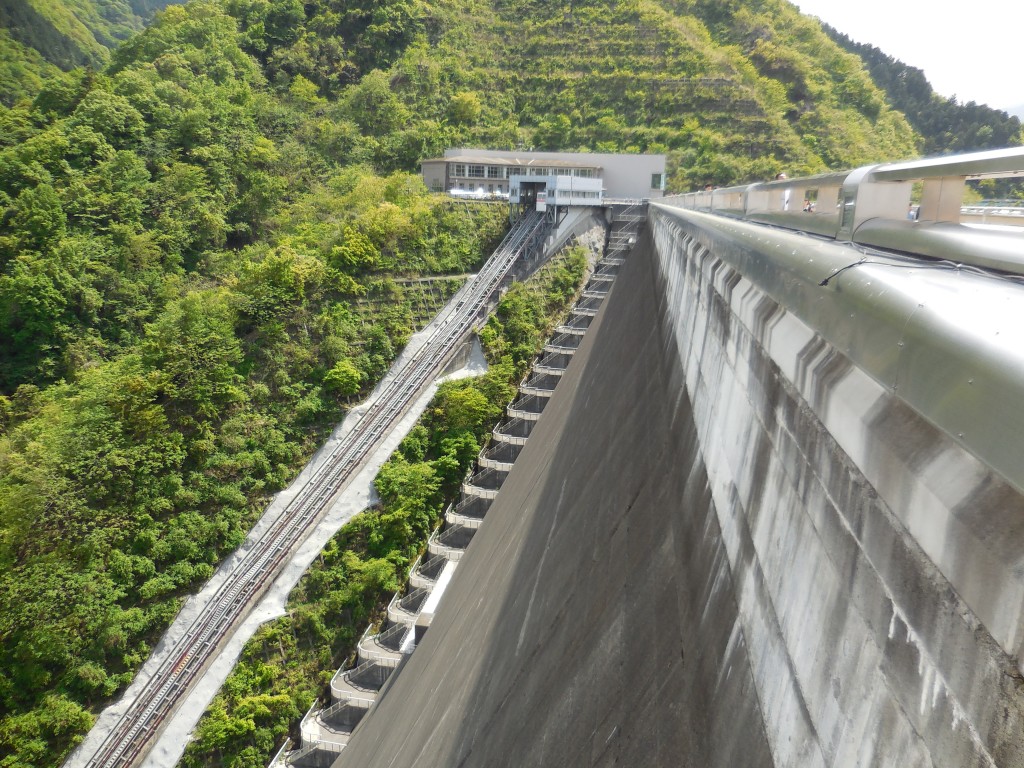 左端のレール宮が瀬ダムインクラインという乗り物で往復ご利用で300円